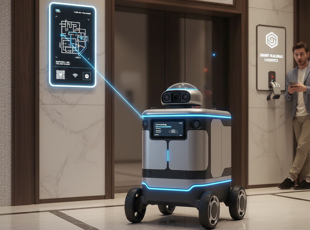 • Thang máy: state machine tích hợp API gọi thang; nếu không có API, tích hợp actuator để bấm nút bằng robot hoặc module “proxy” do tòa nhà cung cấp.