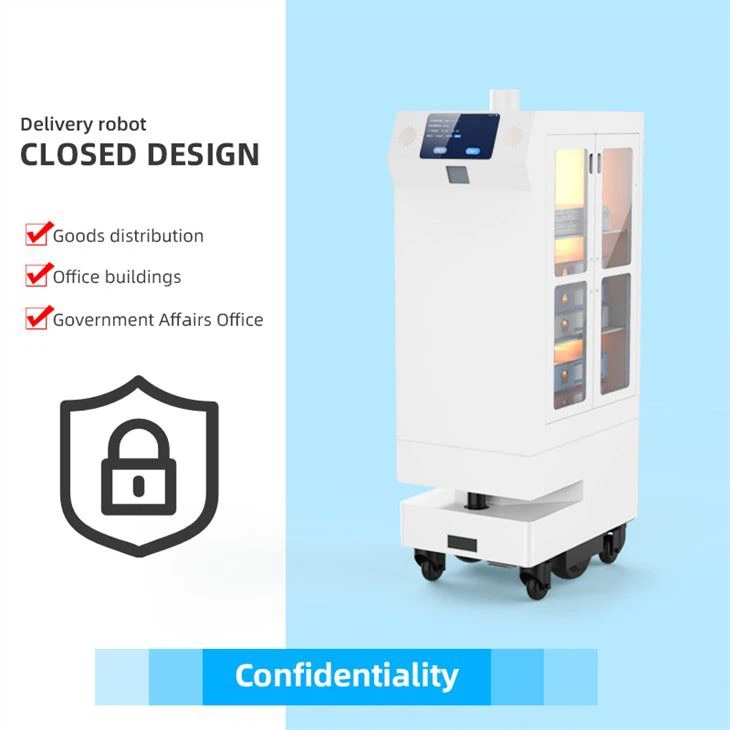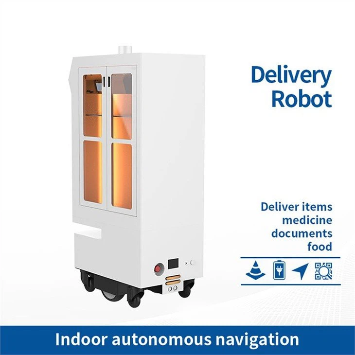 Theo hướng dẫn của người sử dụng, robot giao hàng sẽ chuyển tài liệu và vật phẩm đến vị trí tầng được chỉ định. Sau khi đến đích, nó sử dụng mã QR để xác định và xác minh khóa, đồng thời gỡ gói hàng xuống.