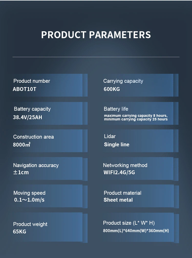 Dựa trên công nghệ sản xuất và nghiên cứu robot thông minh tiên tiến, các rào cản kỹ thuật sâu đã được xây dựng trong các lĩnh vực định vị và điều hướng, điều khiển chuyển động, lập lịch cho nhiều máy, nhận thức và tránh chướng ngại vật, cộng với các nhà hàng, bệnh viện, trường học, tòa nhà văn phòng và chính phủ hội trường.
