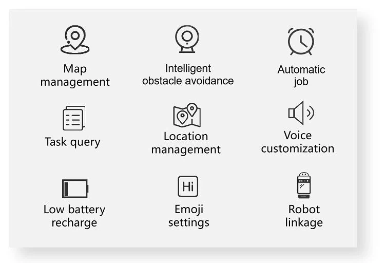 Dựa vào rô bốt thông minh tiên tiến R&D và công nghệ sản xuất, các rào cản kỹ thuật sâu đã được xây dựng trong các lĩnh vực định vị và điều hướng, điều khiển chuyển động, lập lịch cho nhiều máy, nhận thức và tránh chướng ngại vật, cộng với các nhà hàng, bệnh viện, trường học, văn phòng các tòa nhà và hội trường chính phủ.